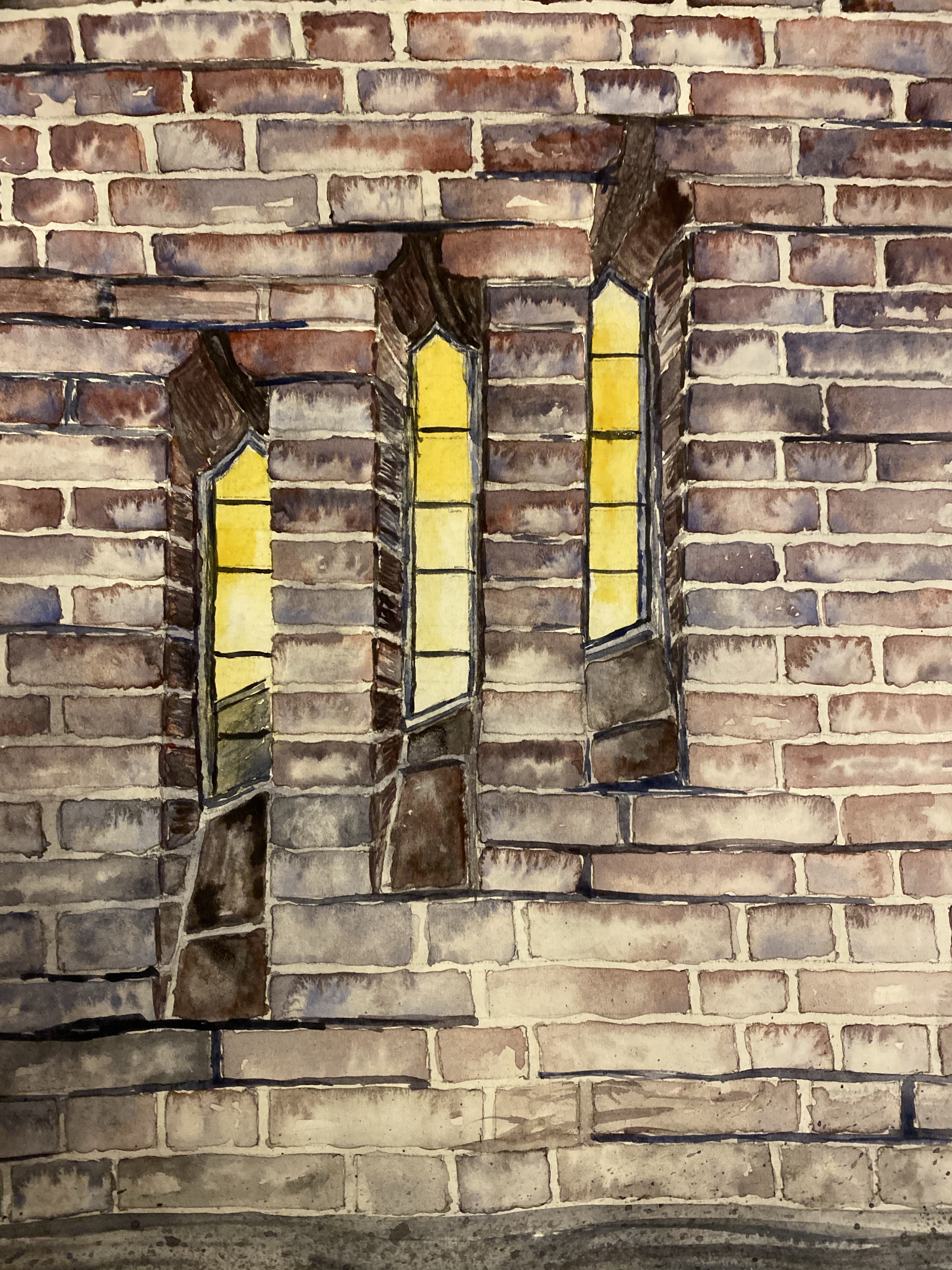 Challenge for the drawing, and remembering the technique for the bricks in the painting.