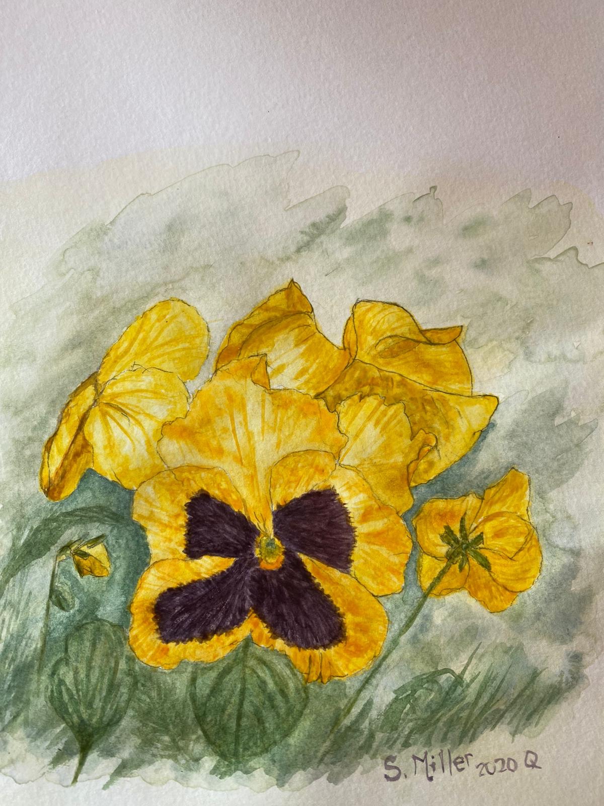 Painting…a skill I never thought I had. It started when we lived in Dothan, AL in the late 1980’s. I saw a painting and I liked it and bought it from a local display in a mall. The man who sold it to me invited me to come and try water color painting myself at a Saturday morning class. I went, and I was hooked! I started playing and drawing (another skill I didn’t know I had) and found that I liked what in saw, more and more. When we moved to Fort Wayne, IN, the paint supplies went with me. I saw an advertisement for a class with a professional artists, Susan Blackwood, so I took a week of vacation and studied under her. She was an awesome teacher. I painted several works and gave them to family and friends. Then in 1997, we moved to France. The paints were never opened..not sure why..just didn’t have the urge. Maybe stress of the job, maybe other interests, not sure, it just didn’t happen. Fast forward to 2018, my dear Rodney died..my life was in type of auto pilot. My friend Glenda, whom I met in Fort Wayne, was now living in Greenville, SC. This is where Rodney and I lived when we came back from China and we reconnected. Glenda had « collected » my painted Christmas cards, and was also in a grief journey of her own after losing her husband 4 years prior. She helped me so much during Rod’s sickness, death and on my own grief journey. Glenda gave me a watercolor art set and encouraged me to start painting again. The box remained shut. I moved to France and I decided to take the box with me. In March 2020, with Covid19 cases raging in Europe, France introduced a confinement. While I was able to work from home, there was also imposed some forced « vacation ». I live in a small apartment in the city and after thoroughly cleaning it, I looked at the little pansies i had planted in my window box back in the fall and saw their beauty in the morning light. I thought about the art box and decided to open it. I sketched and then painted.so many techniques I had forgotten, so many fears, but eventually the little painting was done and I liked what I saw..and even more, I liked the feeling of creativity that started bubbling out. I was re-hooked. In this period of covid19 and continuing on my grief journey painting has provided a wonderful outlet for expressing many emotions that seem to flow from my heart through the brush to the paper.