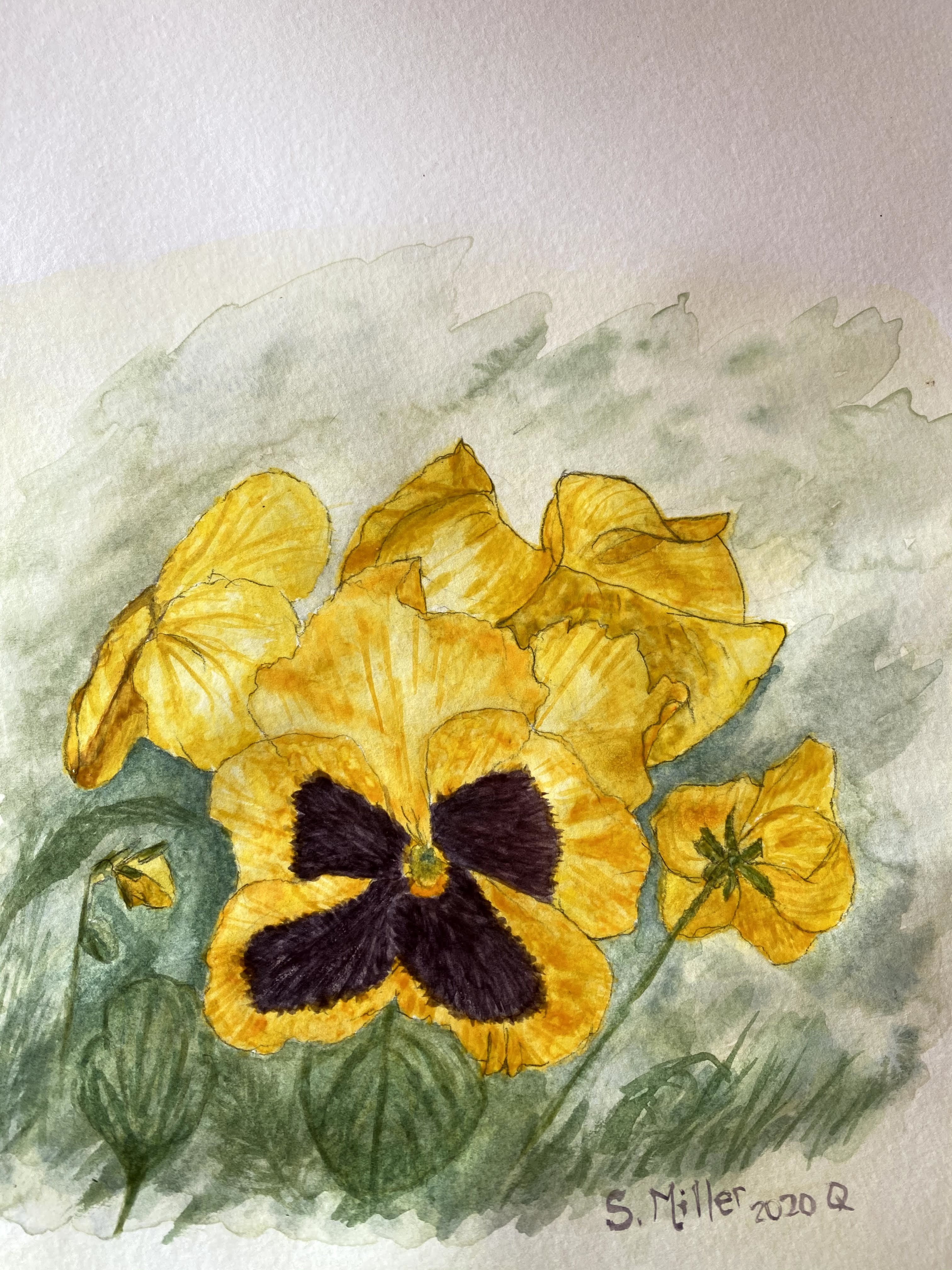 France, like most everywhere in the world, has taken measures to combat Covid19, which include social distancing and in some cases confinement to home. Living physically alone, I knew this had risks to feel isolated. God anticipated this and sent me what Rod called ‘intuitive thought’ to keep me from sinking into loneliness and the related mental health issues. When I was still in Greenville, after Rod’s death, a dear friend of mine, who is also on a grief journey after the death of her husband, gave me an art kit. I gratefully accepted this gift, but I didn’t get past opening the box to use it. She had kept some watercolor Christmas cards I had sent in the early 1990’s and encouraged me to restart painting. I brought the kit with me to France but didn’t open it…until confinement! Thankfully, during confinement, I was able to work from home (although it’s a challenge to inspire operational excellence when you can’t see the operations firsthand!). The world-wide economy had virtually come to a halt and Michelin was taking many measures to conserve cash and prepare to be able to rebound when hopefully demand for our products rose (thankfully this is the case as I type this note). One of these measures taken was to force ‘vacation’ during confinement. Stay-cation to the extreme! During this time, I had “intuitive thought” to get the painting kit out of the closet and try to paint. I hadn’t painted for 25+ years! My 1st attempt was to draw and paint the pansies in my balcony box. The challenge was to remember to draw what I saw (right side of brain) , not the shortcut version image of a flower (left side of brain). Then, once starting to mix the colors and use the water, trying to remember techniques with a test and learn approach and, gradually gaining confidence, learning to accept that each piece would not be a masterpiece! I am so grateful to have restarted this hobby/work/creative expression. I have invested in some new tools and enjoy them, but I will always keep the kit that was so instrumental in the rediscovery of a latent ability.
