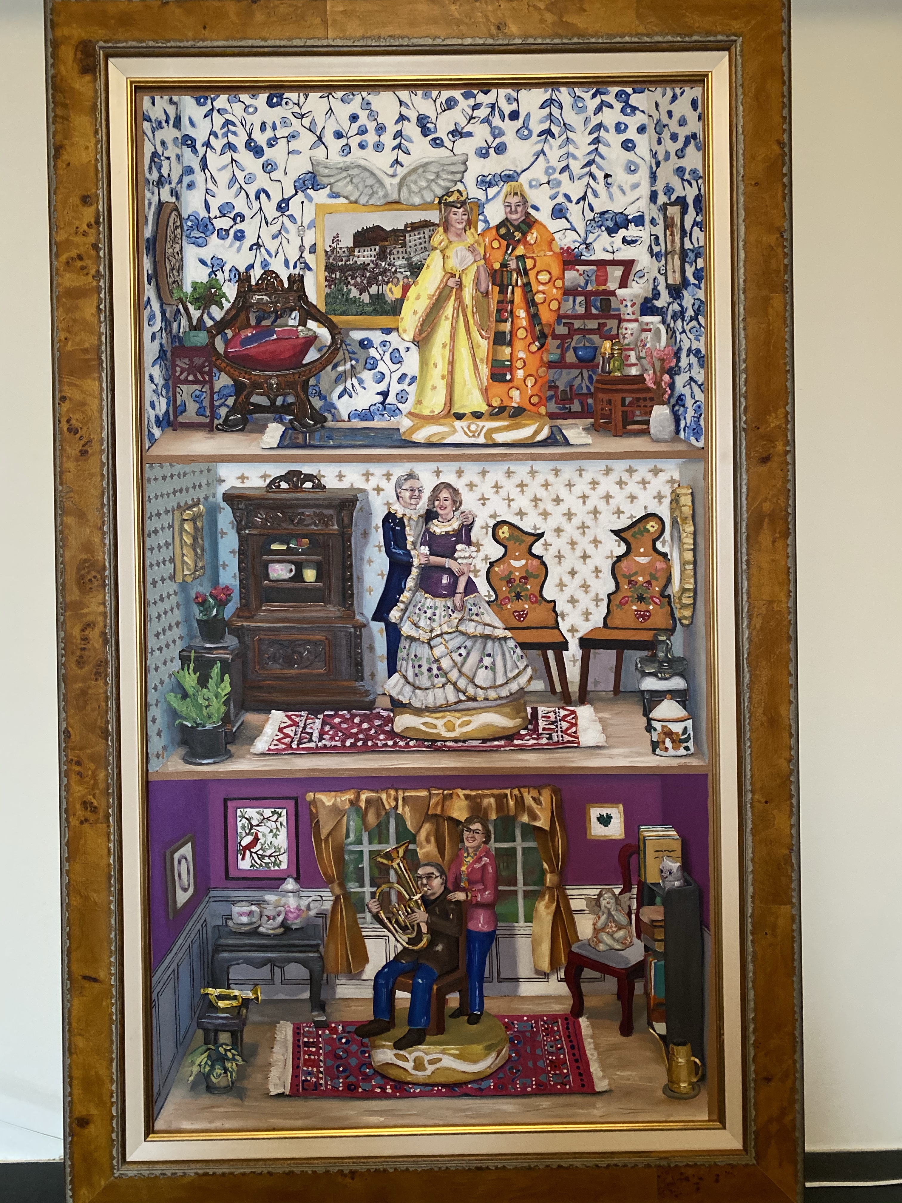 To accompany this love story an amazing Artist Emily Quinn was commissioned to capture this life in the form of figurines in a doll house. Through a series of photos and email exchanges, she captured the essence of our Charmed life with oil in canvas. She is an amazing artist!