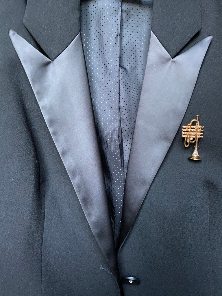 Today was a special day Rod. I found out that I have made the first cut for a prize in France for women in industry sponsored by a relatively famous trade magazine in France called “Usine Nouvelle”. I don’t know if i’ll win, but feeling pretty good about being nominated. This first cut means I’ll be in a special edition of the magazine that comes out in September. Yesterday, I was interviewed by a journalist and today I had a photo shoot. So, I prepared a nice suit and looked for a lapel pin in my jewelry box and there was the gold trumpet you bought me in HongKong..the next to last piece of jewelry you bought me.